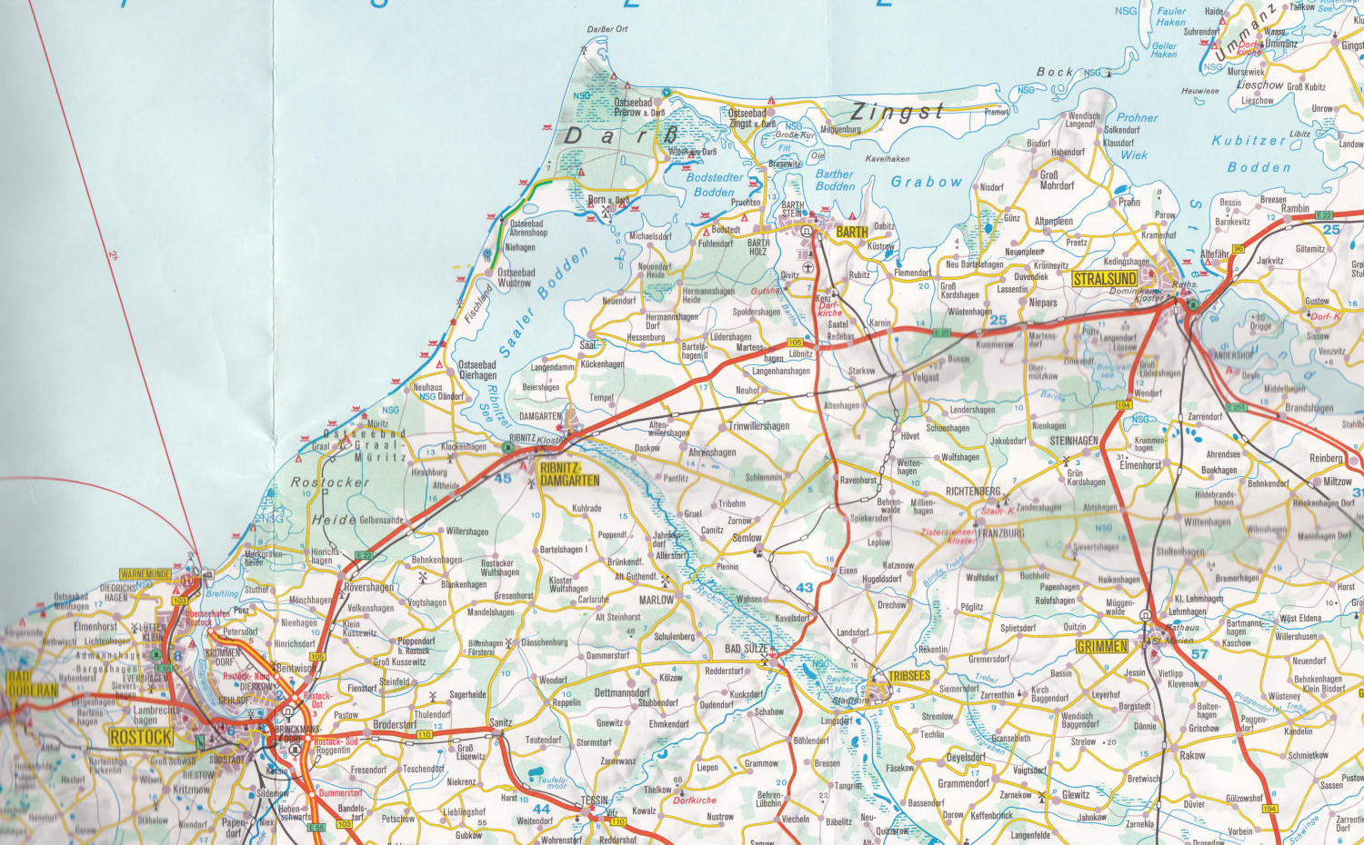 Dann über die B 105 (E 22) bis Altheide, links abbiegen und über Klockenhagen, Dierhagen, Wustrow und